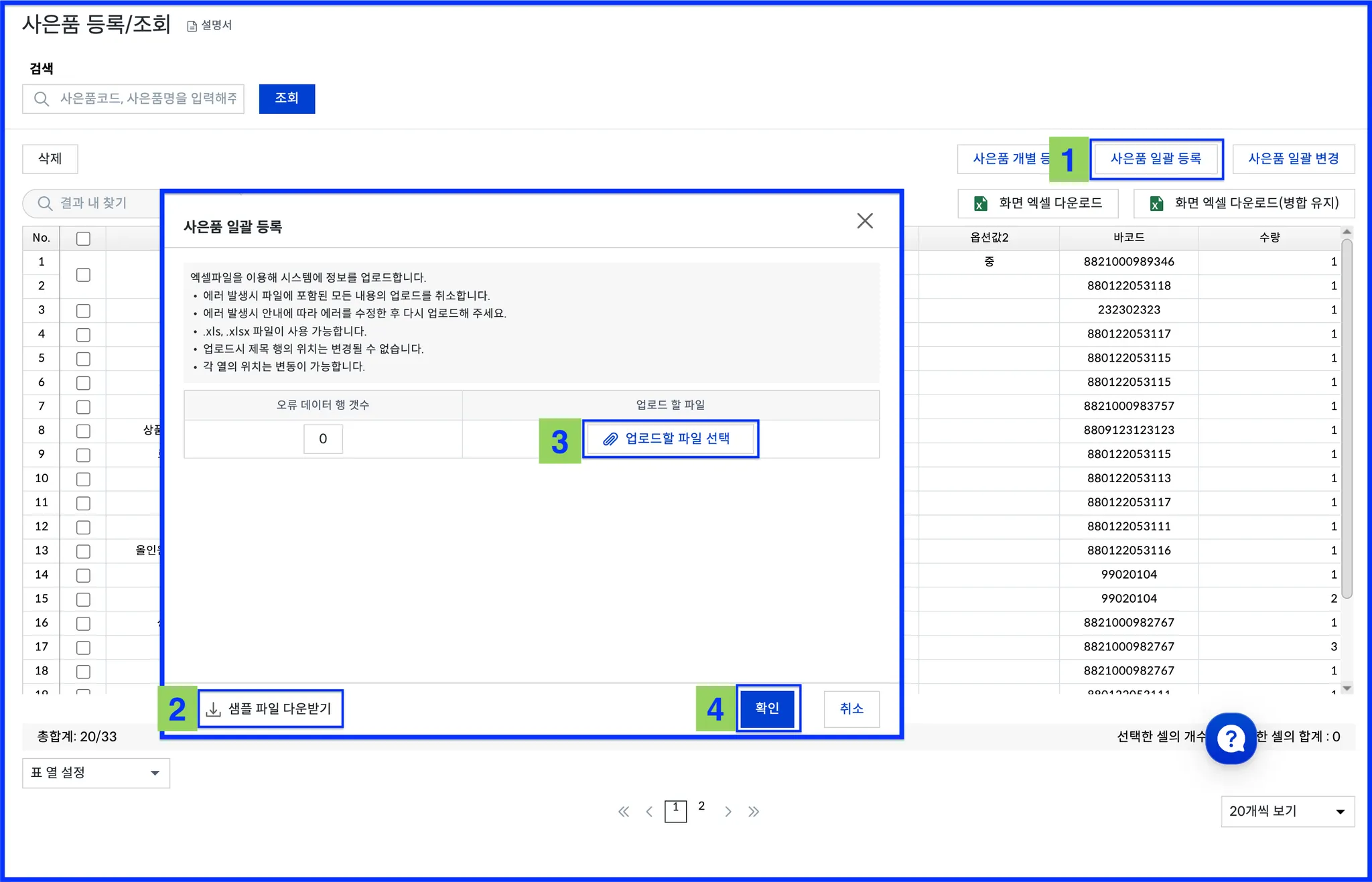 엑셀 파일 저장 후, 업로드할 파일 선택