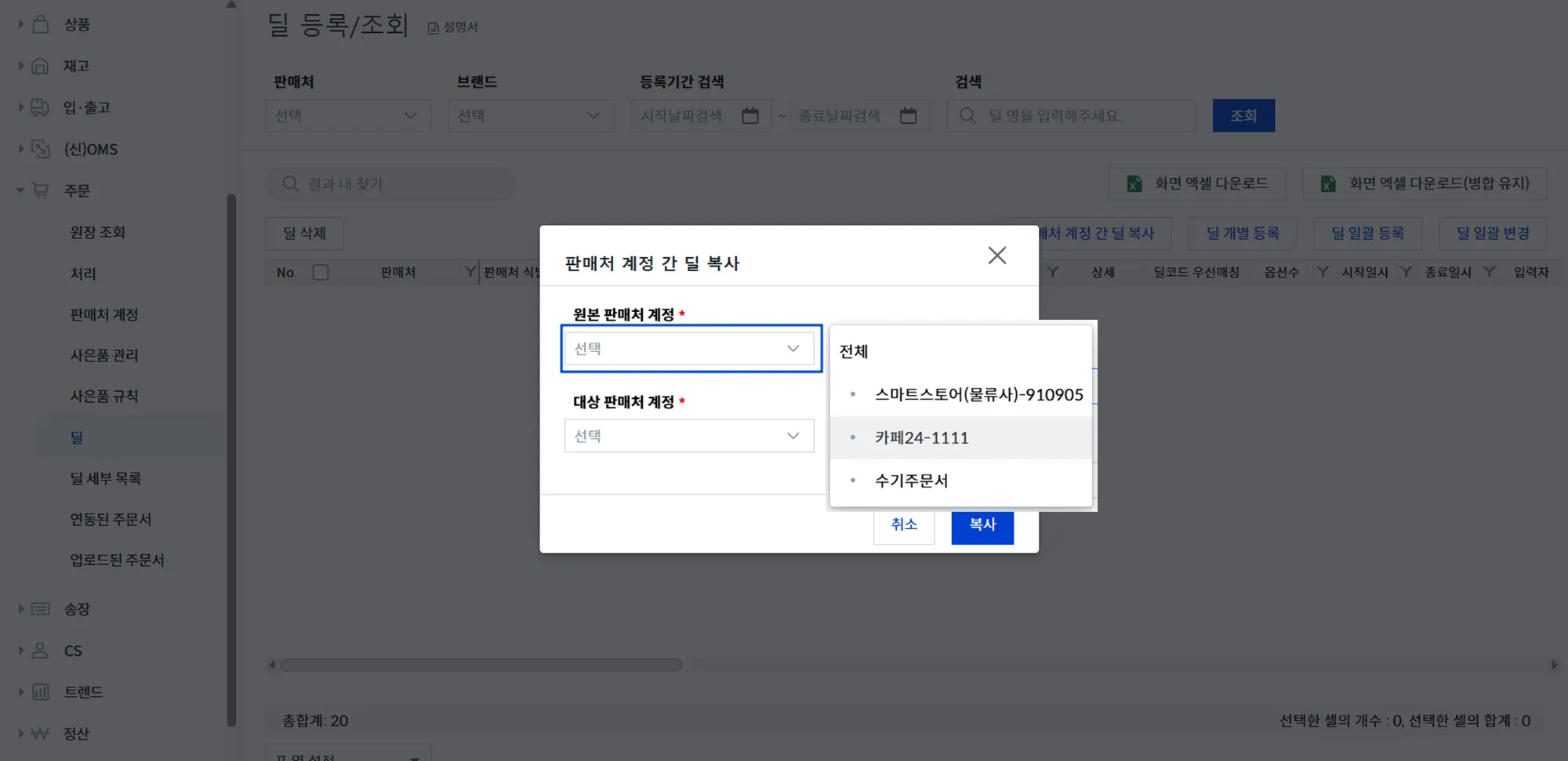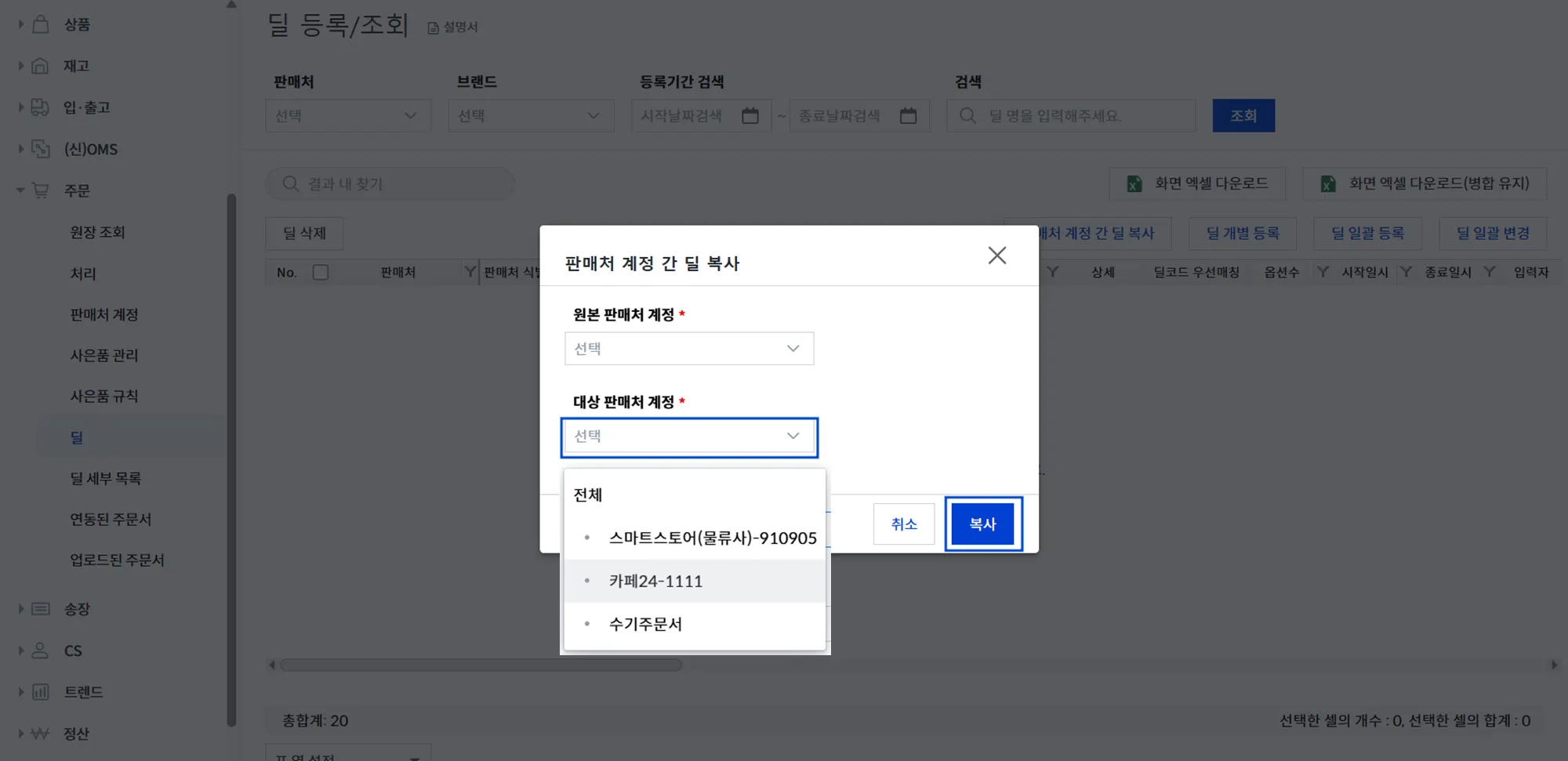 [2] 판매처 계정 간 딜 복사 클릭