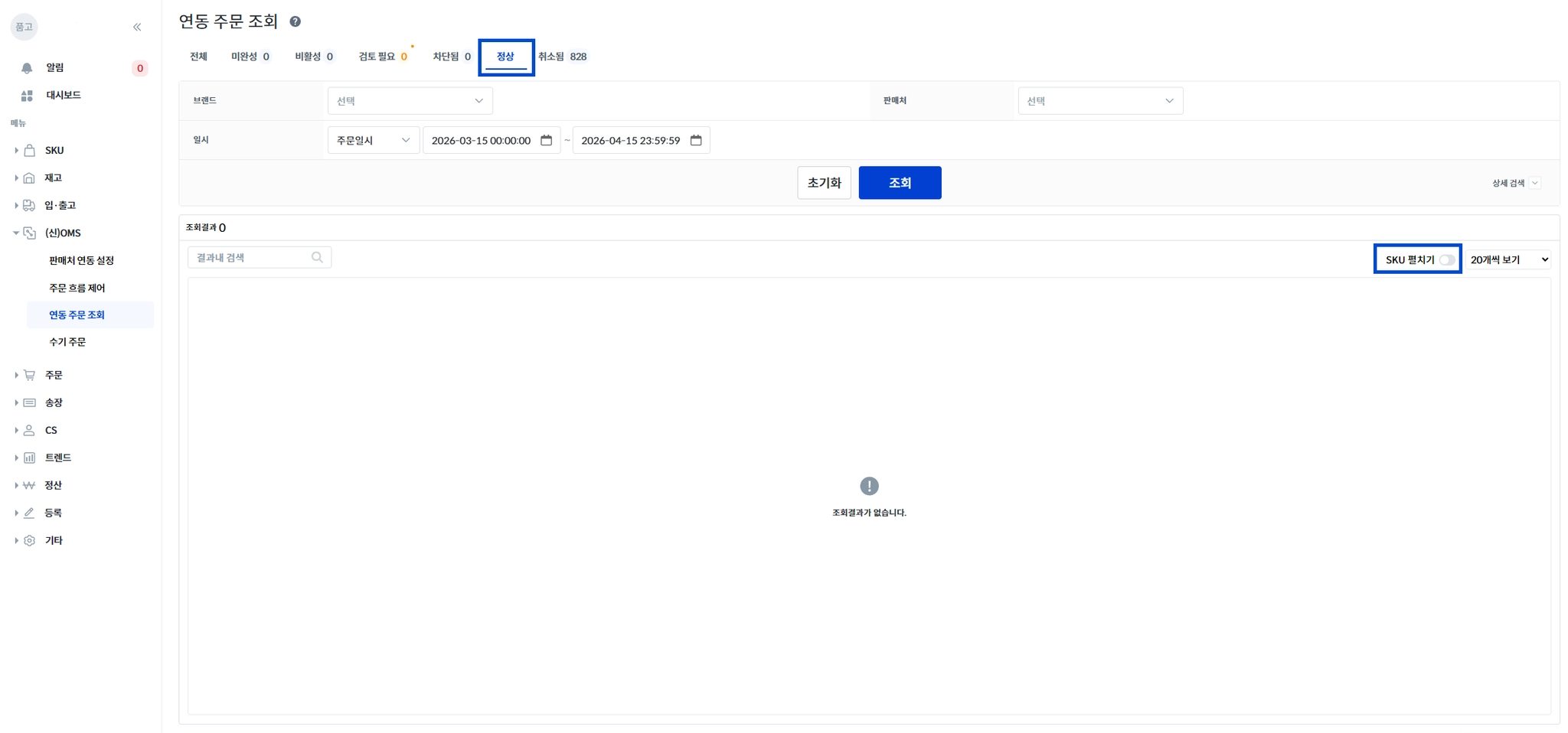 (신)OMS → 연동 주문 조회 → 정상 탭