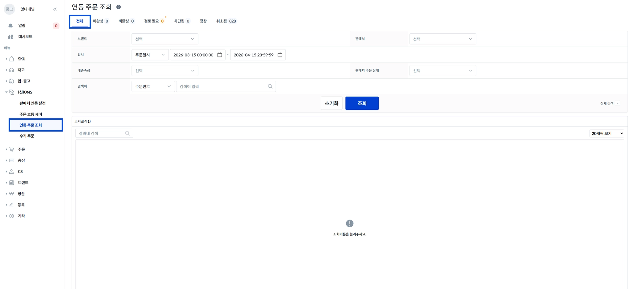 (신)OMS>연동 주문 조회(신) → 전체 탭