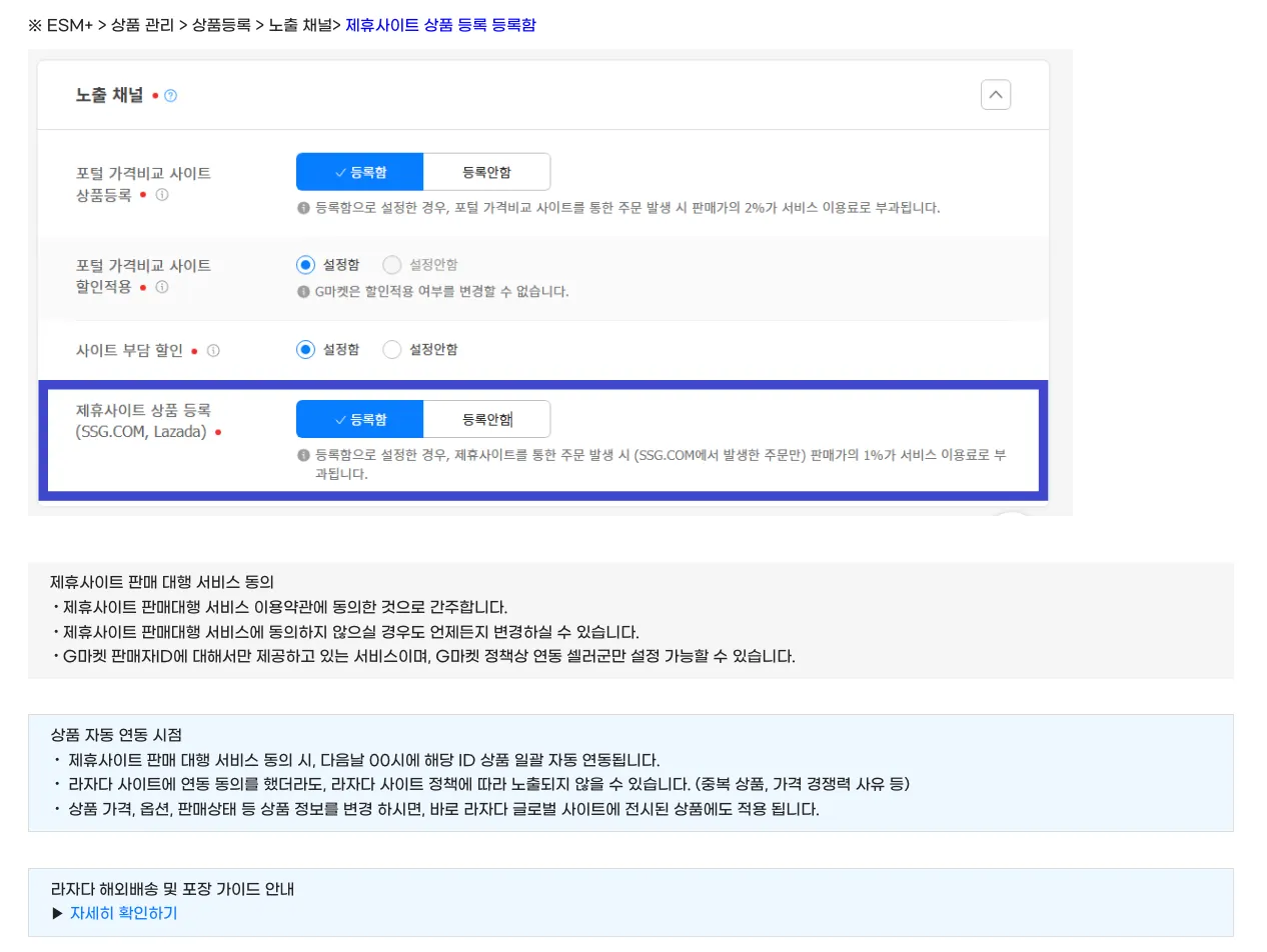 ※ 풀필먼트 스타배송의 라자다 이용은 추후 지원 예정이며, 현재로서는 정확한 적용 일정은 정해지지 않았습니다.