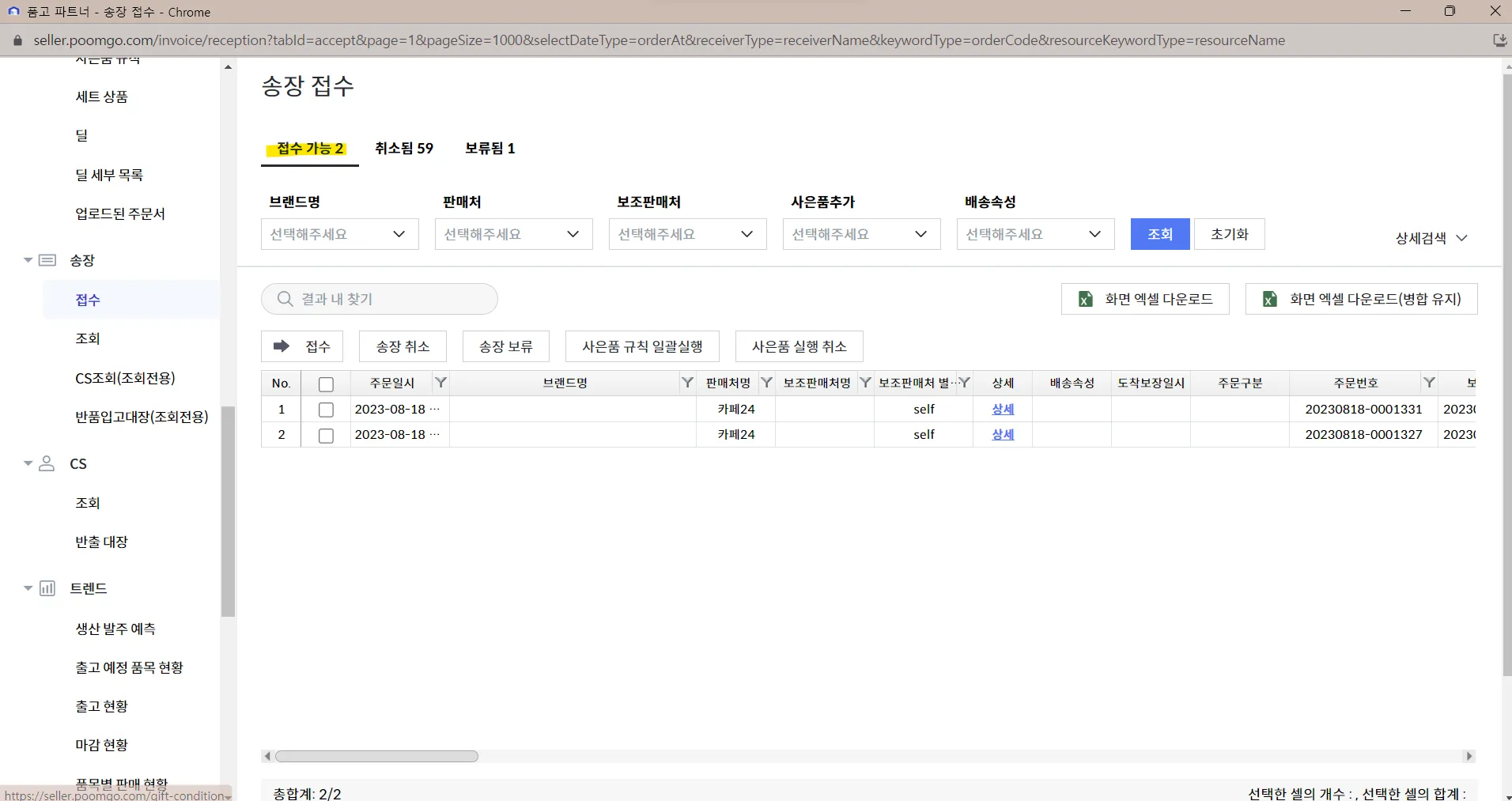 [송장 - 접수 - 접수가능]