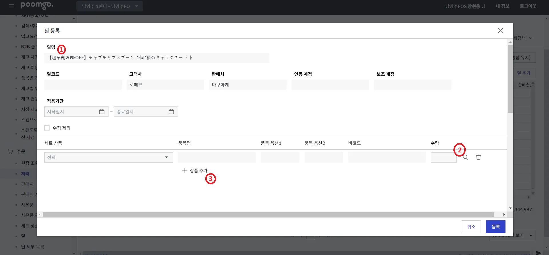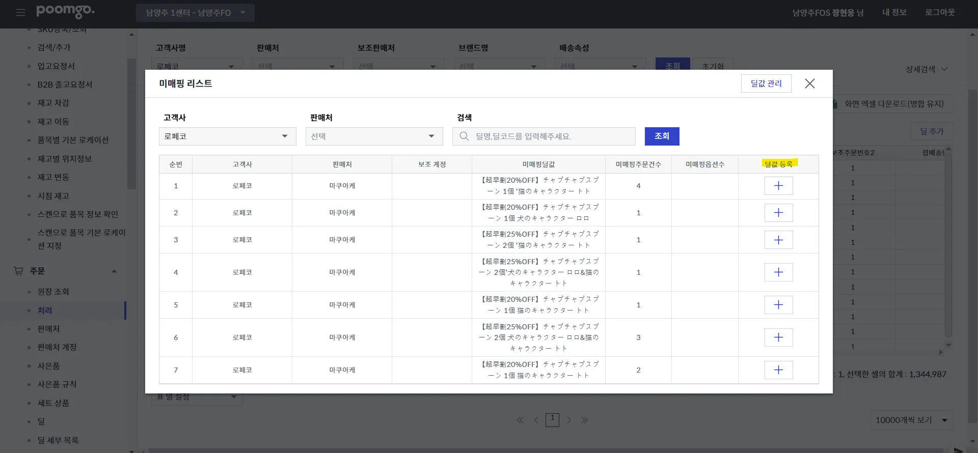 정상적으로 주문서 업로드가 되었다면, 딜 매칭 작업이 필요합니다.