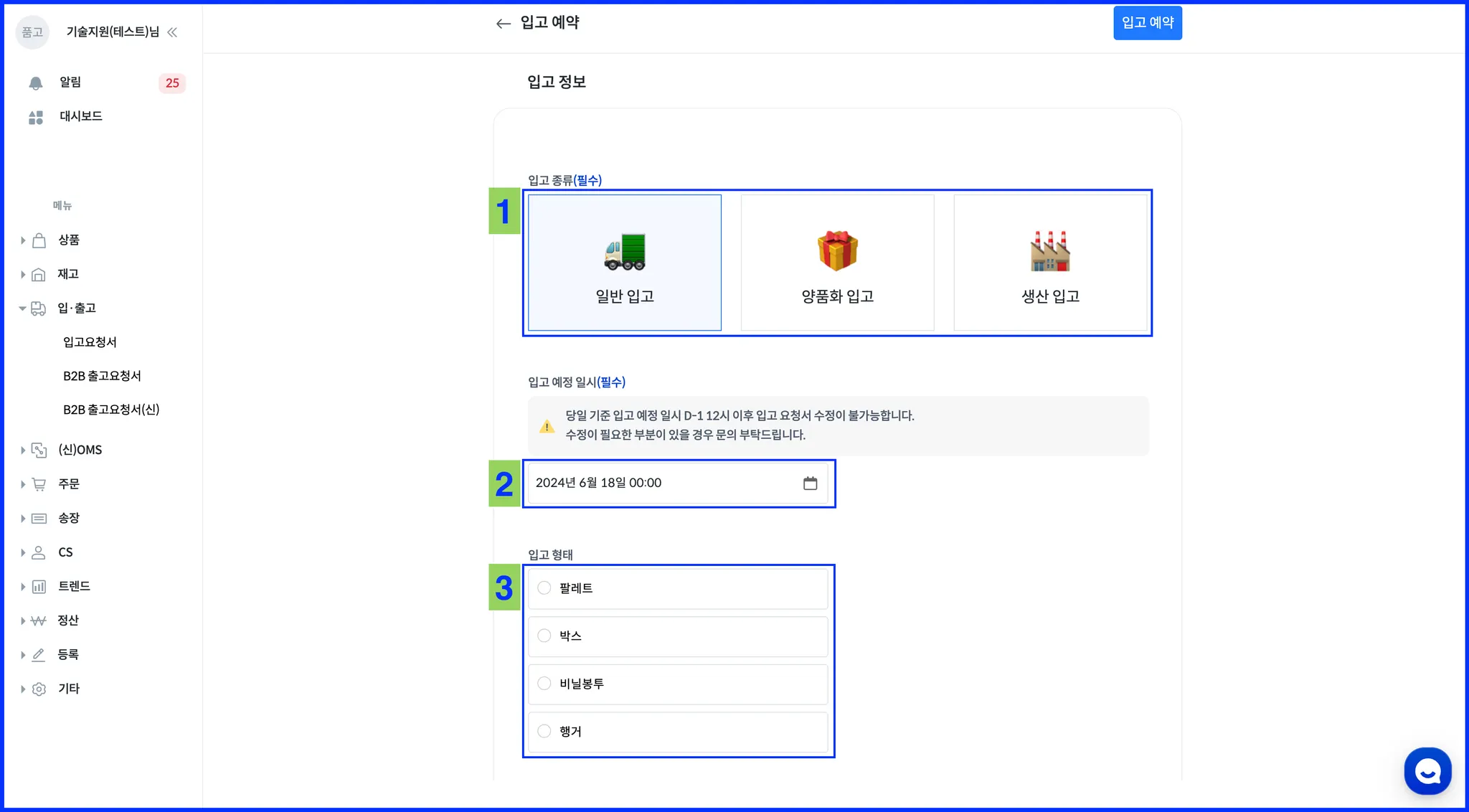 입고 예약 클릭