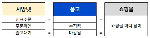 사방넷 주문 상태에 따른 품고 나우와 쇼핑몰의 상태 값이 상이합니다