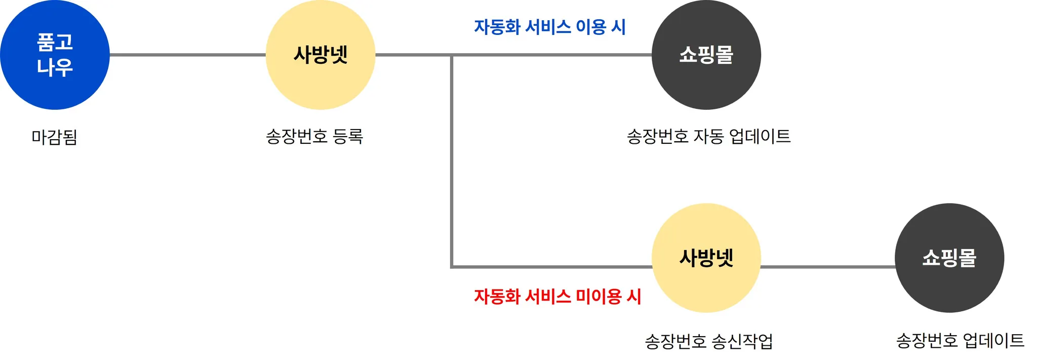 단, 자동화 서비스를 사용하지 않는 경우 사방넷에서 송장번호 송신 작업의 단계를 거쳐야 쇼핑몰에 송장번호가 전송됩니다. 쇼핑몰까지 자동으로 송장이 전송되길 희망하시는 경우 자동화 서비스 이용을 권장 드립니다