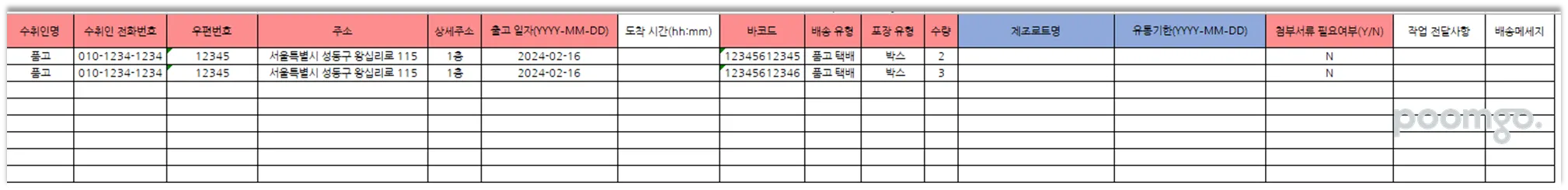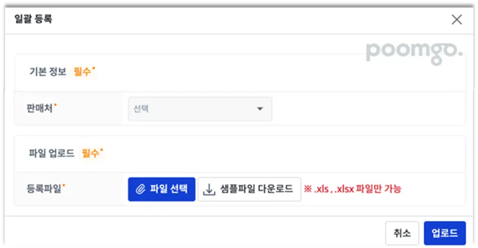 샘플 파일 다운로드 후 필수 값을 모두 입력한 뒤 업로드해 주세요.