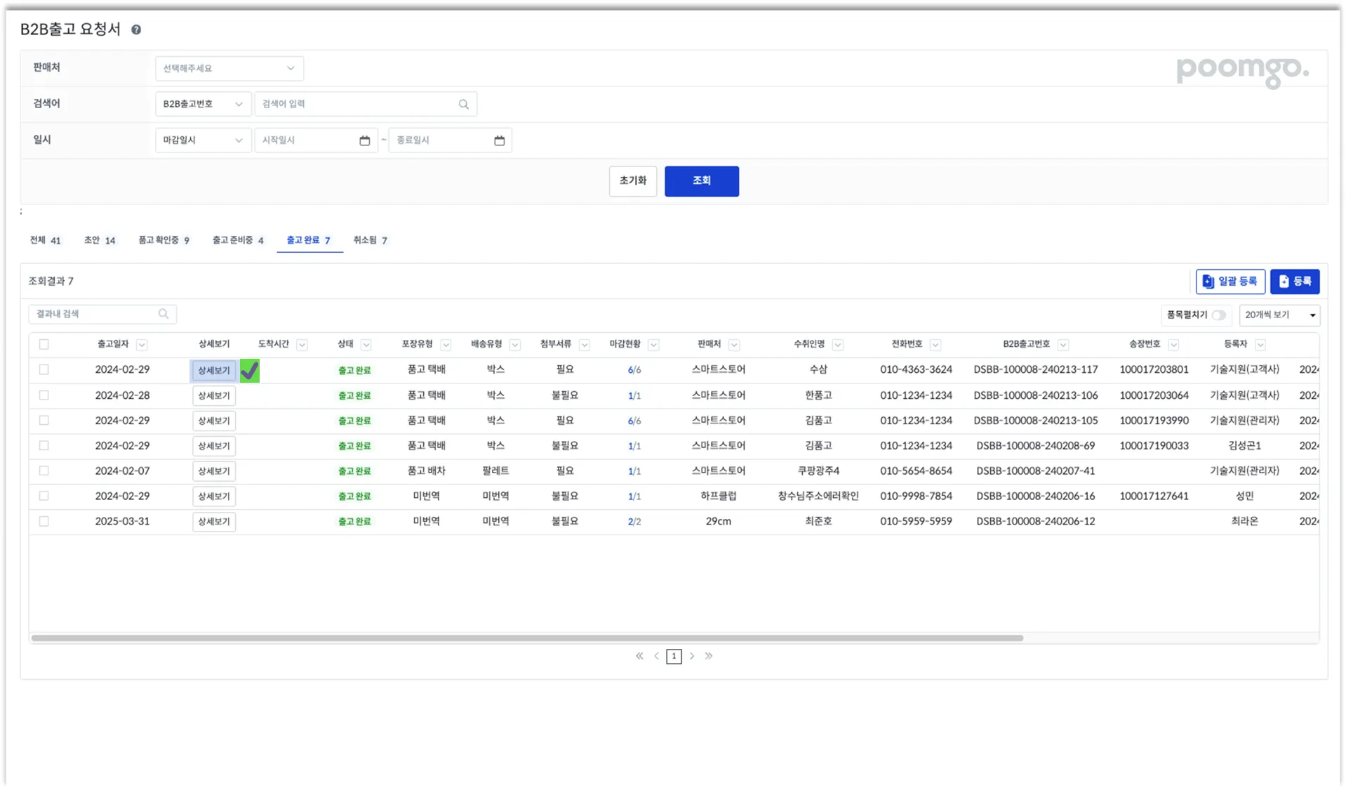 상세 보기 : 생성한 B2B 출고 건에 상세 내용 확인 가능