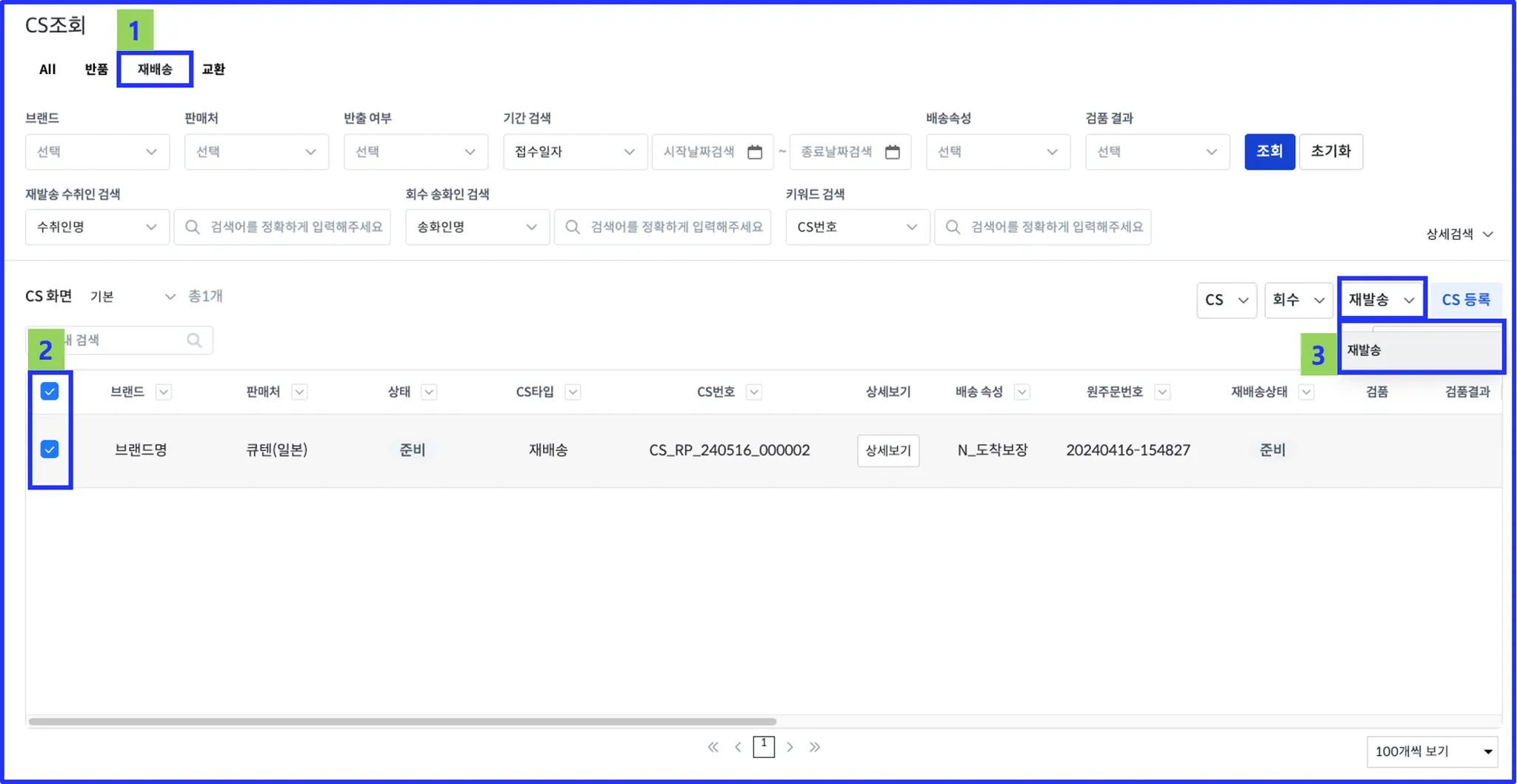 재발송 할 CS선택