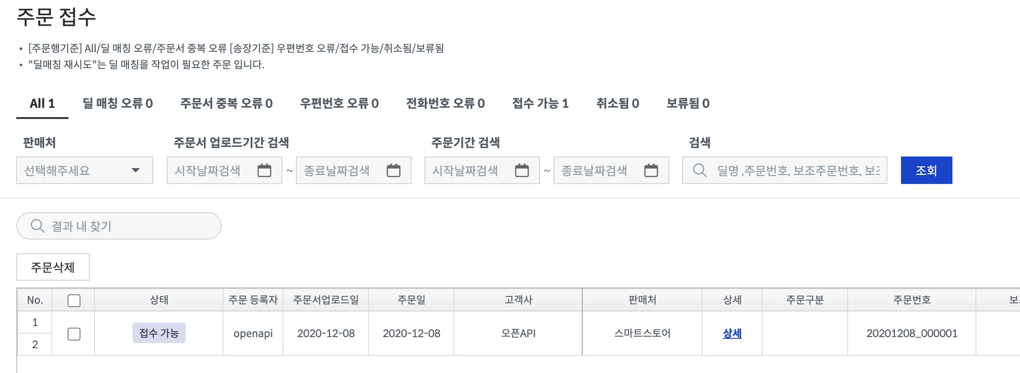 "dealName": "판매처 주문명",
