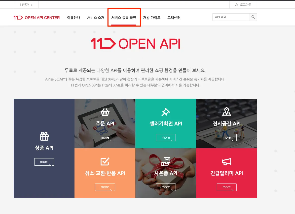 어드민 로그인 후, 스크롤를 가장 하단으로 이동하고 우측 하단에 Open API 버튼 클릭