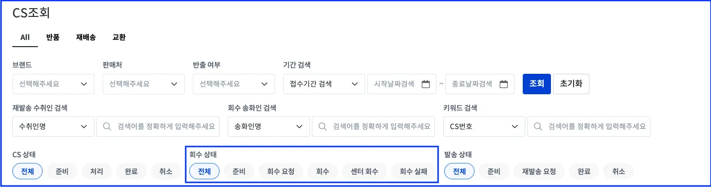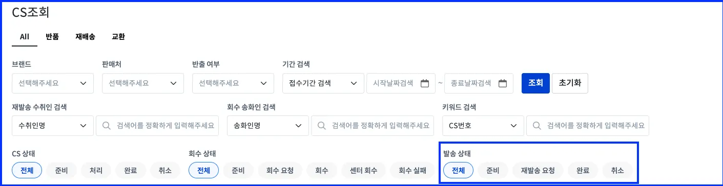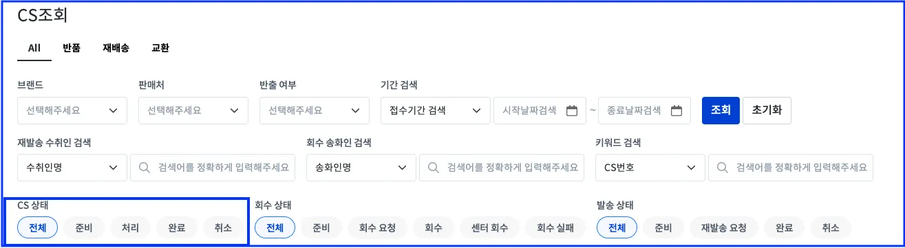 CS - [조회/반출 대장] - 반품, 교환, 재발송, 반출